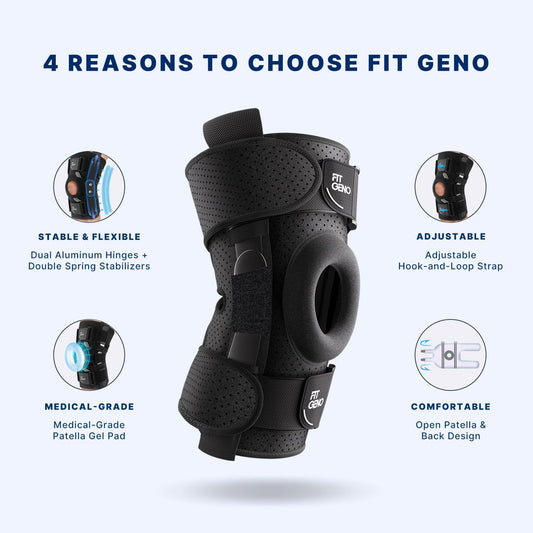 Fit Geno ReActive+ Knee Brace for Knee Pain for Men and Women, Adjustable Hinged Knee Brace with Side Stabilizers for Maximum Knee Support, Ultimate Knee Brace for Meniscus Tear ACL MCL Arthritis