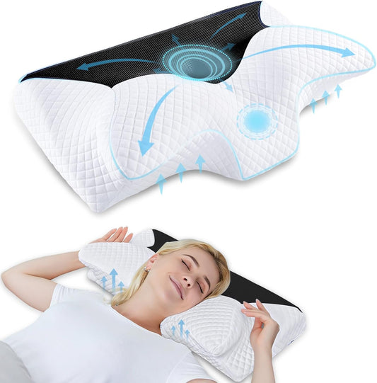 HOMCA Cervical Pillow Memory Foam Pillows - Contour Memory Foam Pillow for Neck Pain Relief, Orthopedic Neck Bed Pillow for Side Sleepers Back and Stomach