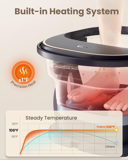 Puboo Collapsible Heated Foot Spa Bath with Remote, 95-115°F Precise Temp Control, Motorized Massage Rollers & Acupressure, Quiet <50dB, Fits US Men’s Size 11 | Ideal Gift for Family & Friends
