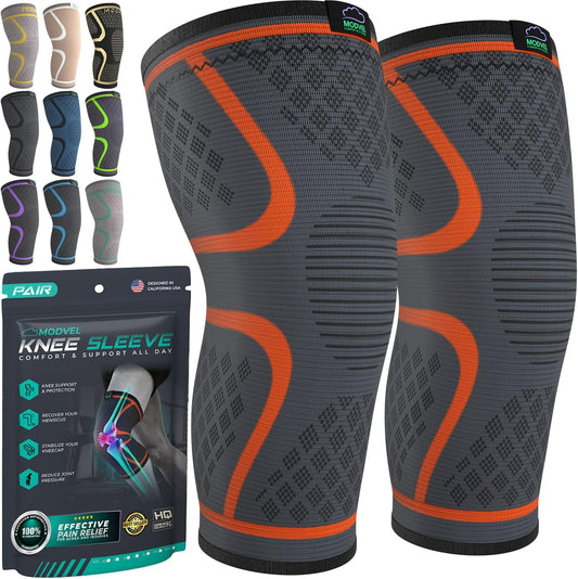 Modvel Knee Braces for Knee Pain Women & Men - 2 Pack Knee Brace for Knee Pain Set, Knee Brace Compression Sleeve, Knee Braces for Knee Pain Meniscus Tear, ACL & Arthritis Pain Relief - Knee Sleeves
