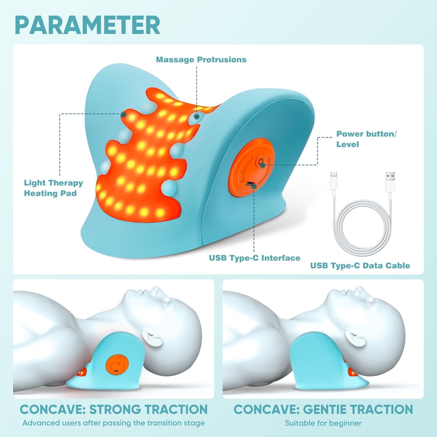 Heated Neck Stretcher with Red Light Therapy, Wireless Cervical Traction Device for TMJ Pain Relief and Shoulder Relaxer, Neck Stretcher Pillow for Home/Office Used
