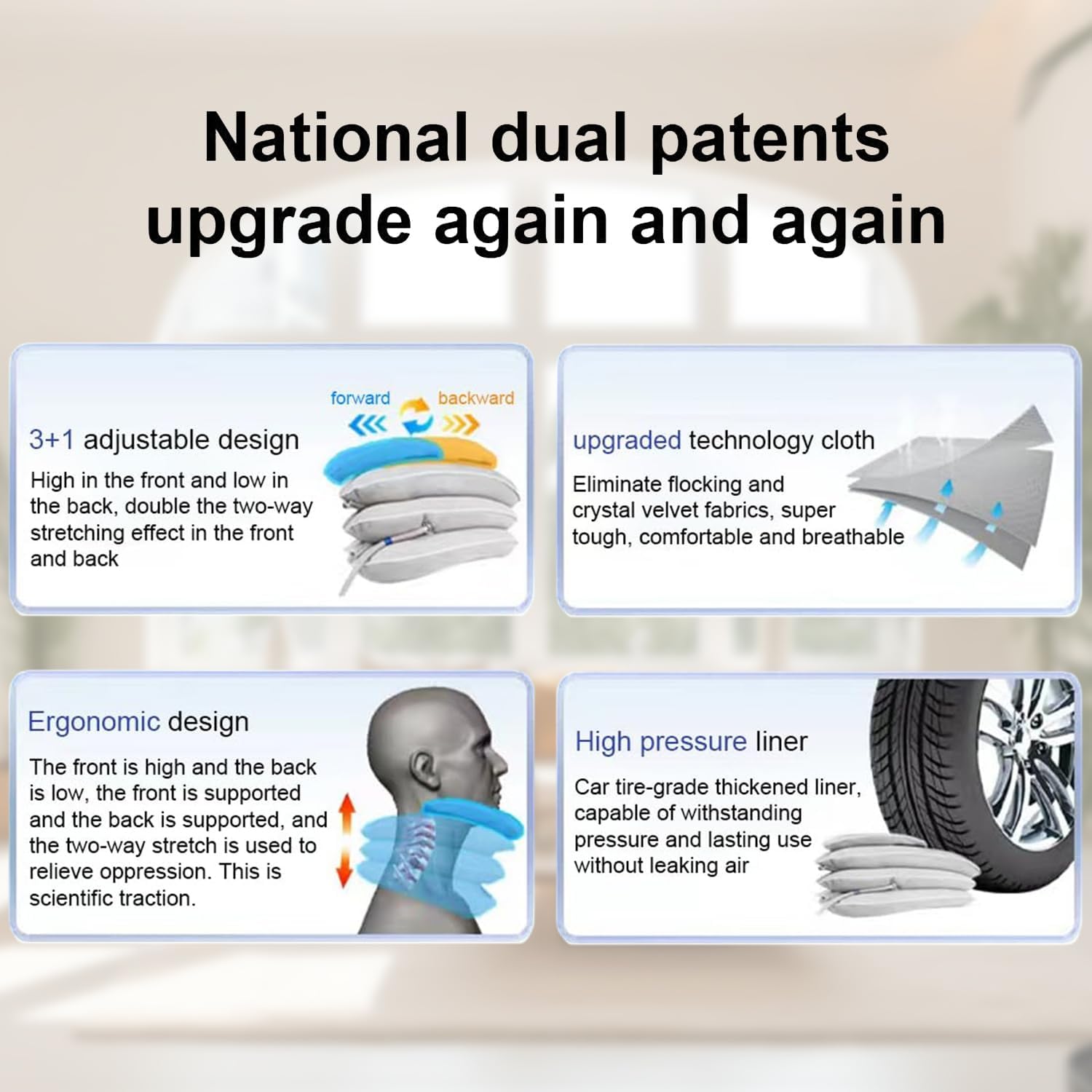 Neck Stretcher with Neck Brace, Cervical Traction Device, Neck Pain Relief Tool, Adjustable Inflatable Cervical Brace,Home Use Neck Decompression Device New Technology Breathable Fabric