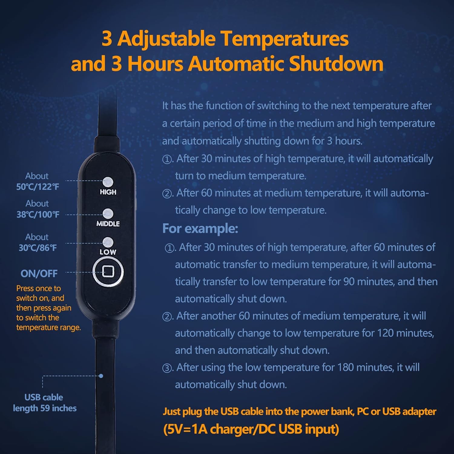 - πγ Heated Neck Cervical Traction Device Pillow γ When you choose to use USB heating neck traction pillow, combined with graphene heating pad, help relax tight muscles in the neck and jaw, release tension and pressure, and help blood circulation. The USB heating neck traction pillow has 3 adjustable temperatures and 3 hours automatic shutdown function, provide you with comfortable temperature. Just plug the USB cable into the power bank, PC or USB adapter (5V=1A charger/DC USB input).