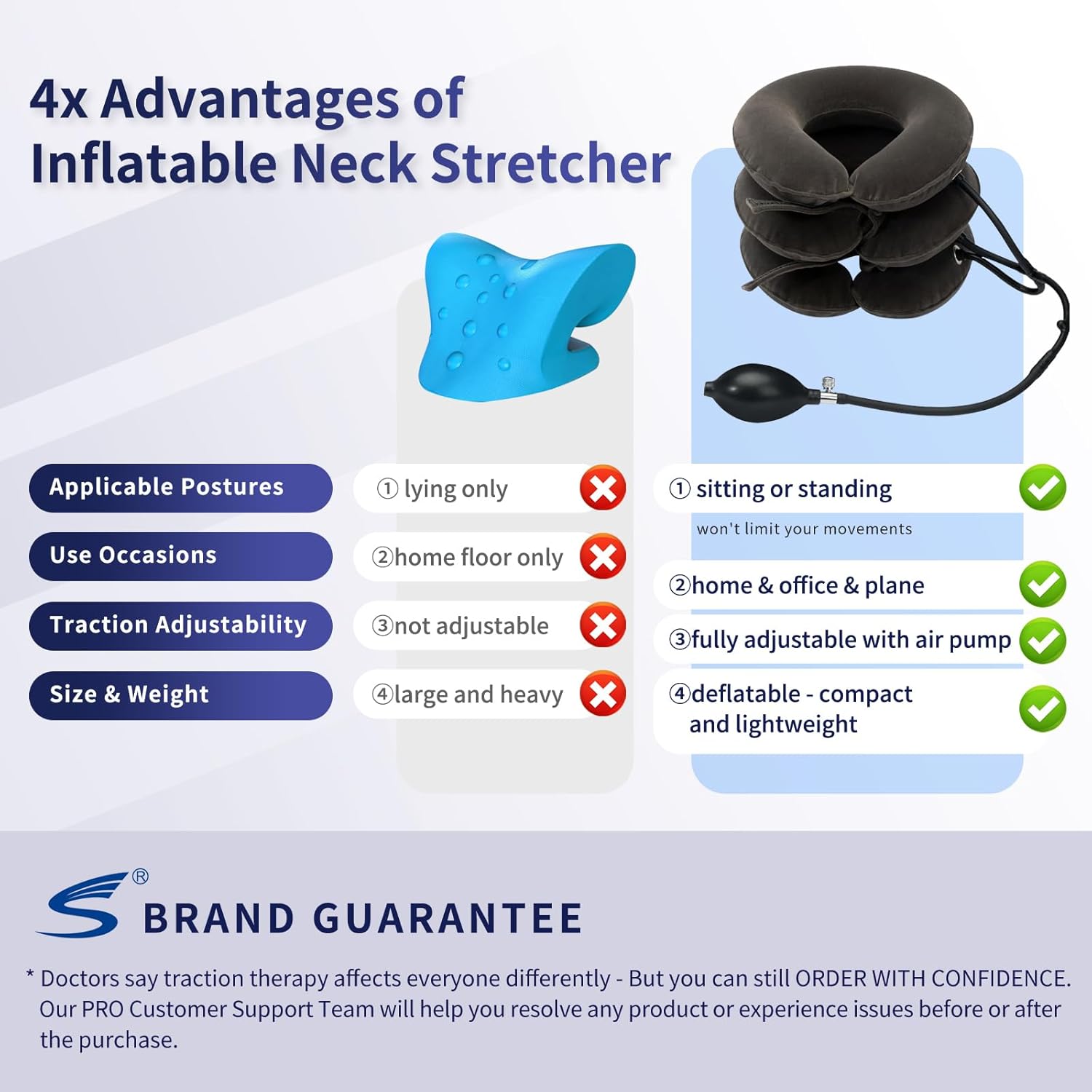 S Cervical Neck Traction Device for Instant Neck Pain Relief - Inflatable & Adjustable Neck Stretcher Neck Support Brace, Best Neck Traction Pillow for Home Use Neck Decompression