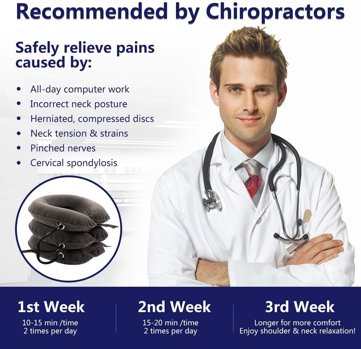 - ✅CHIROPRACTOR RECOMMENDED NECK EXTENDER - The neck inflatable stretcher is made in high-quality material and can effectively offer spine alignment and chronic neck pain relief. With this easy neck traction pillow, you can alleviate nerve tensions at home and reduce unnecessary visits to the physical therapists when you are getting better.